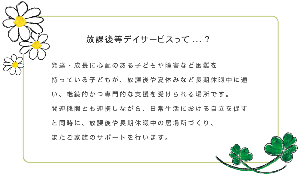 富士市大渕の放課後等デイサービス「カモミール」と「クローバー」